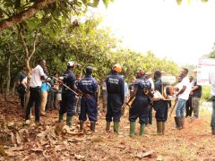 The field trip included visits to the Krokosua forest reserve, an abandoned illegal mining site, a hike through Bia National Park at Kumkumso and ended with a symbolic football match between Asempanaye and Boinzain, two major cocoa farming communities close to the Krokosua Forest.